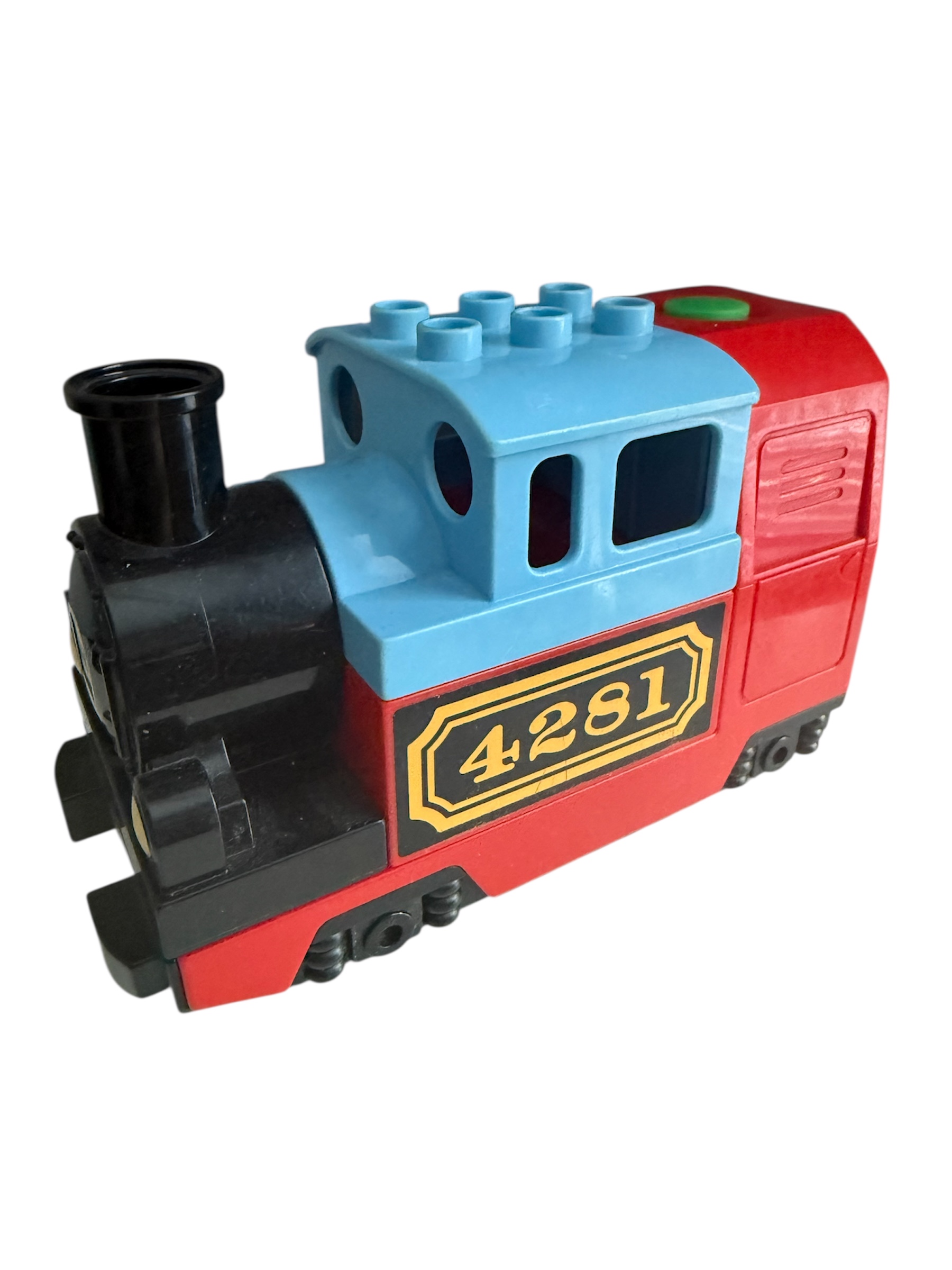 Jezdí již trochu pomaleji, další vagon utáhne. Trochu vržou kolečka. Startuje se tlačítkem. Již NEHOUKÁ A NEVYDÁVÁ ZVUK PŘI TANKOVÁNÍ! Proto nižší cena.